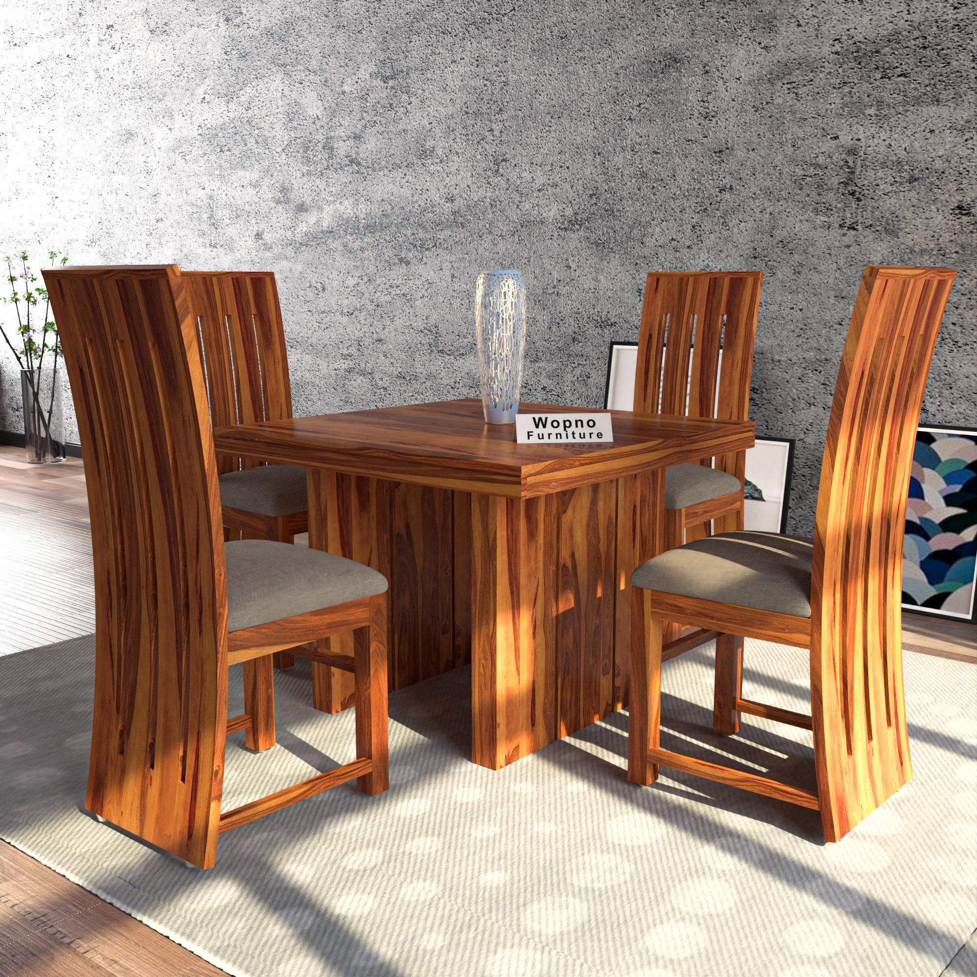 Upgrade your dining space with a perfect blend of elegance, durability, and everyday comfort with the Furnixia 4 Seater Dining Table Set by Wopno Furniture. Expertly crafted from premium solid Sheesham wood, this dining set showcases rich natural grain patterns and a smooth finish that adds warmth and sophistication to any interior.