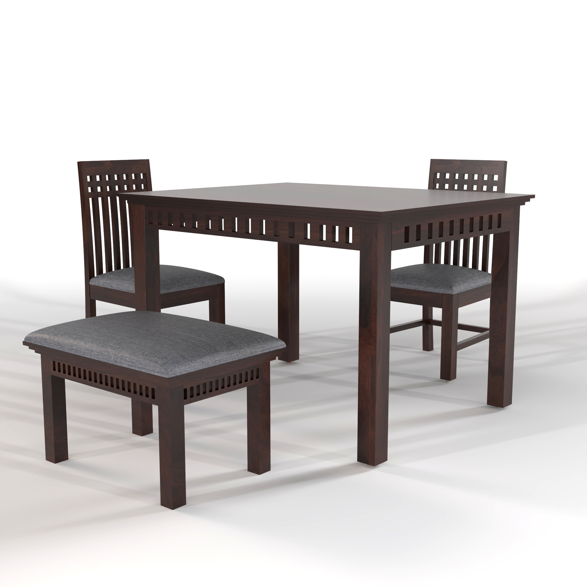 Nexora Solid Sheesham Wood 4 Chair with 1 Bench Dining Table Set with Cushioned Chairs