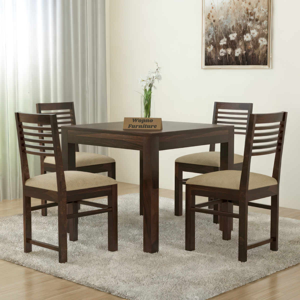 Upgrade your dining space with timeless elegance and everyday functionality with the RoyalNest 4 Seater Dining Table Set by Wopno Furniture. Crafted from high-quality solid Sheesham wood, this dining set features a rich natural finish and beautifully defined grain patterns that add warmth and sophistication to your home.