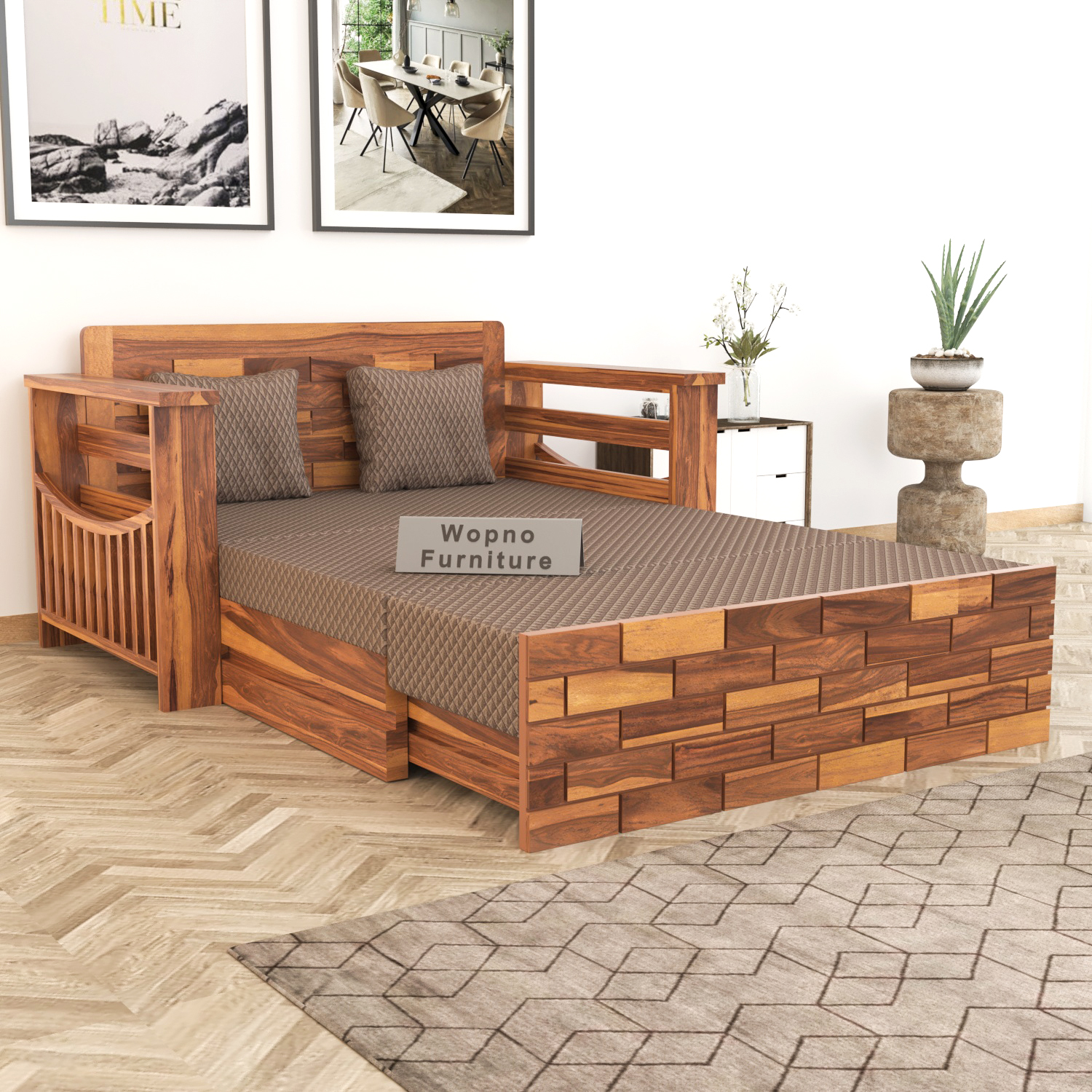 Redefine your living space with the UrbanEdge 2 Seater Sofa Cum Bed by Wopno Furniture, designed for modern homes that value both style and functionality. Crafted from premium quality Sheesham wood, this elegant piece offers exceptional durability along with a rich natural finish that adds warmth and sophistication to your interiors.