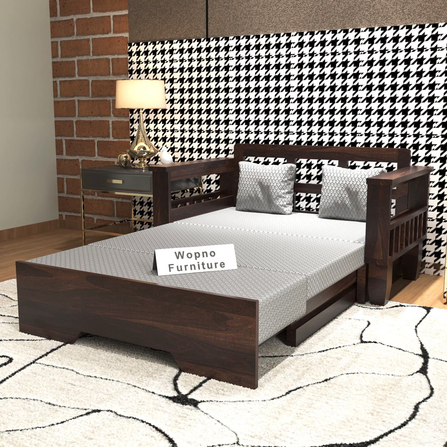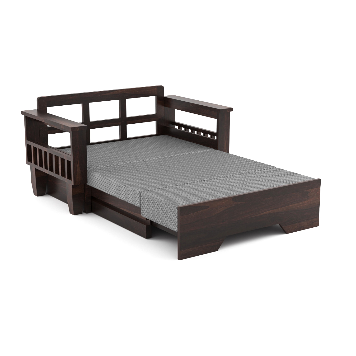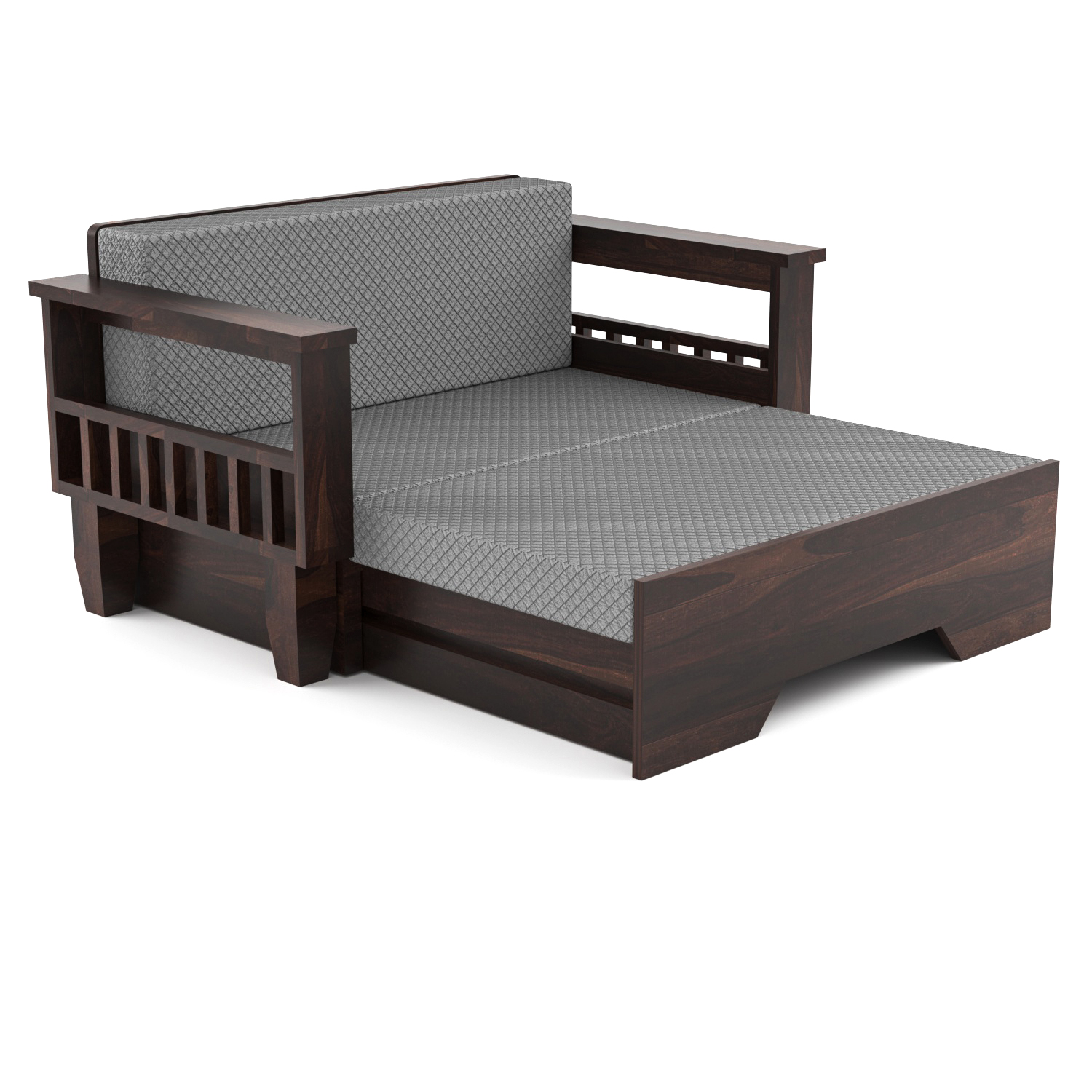 Upgrade your living space with the perfect blend of elegance, durability, and functionality with the UrbanMitra 2 Seater Sofa Cum Bed by Wopno Furniture. Expertly crafted from premium quality Sheesham wood, this versatile piece effortlessly transforms from a comfortable sofa into a spacious bed, making it ideal for both everyday use and accommodating guests.