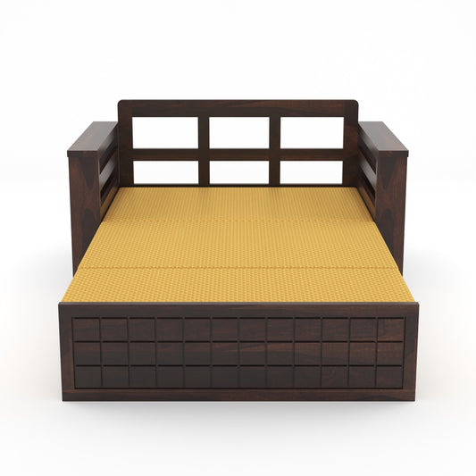 Wopno Furniture Orvan Solid Sheesham Wooden 2-Seater Diamond Sofa Cum Bed (Walnut Finish) Add elegance and versatility to your home with the Orvan 2-Seater Diamond Sofa Cum Bed from Wopno Furniture, expertly crafted from solid Sheesham wood for long-lasting strength and beauty. This multifunctional piece easily converts from a sofa...