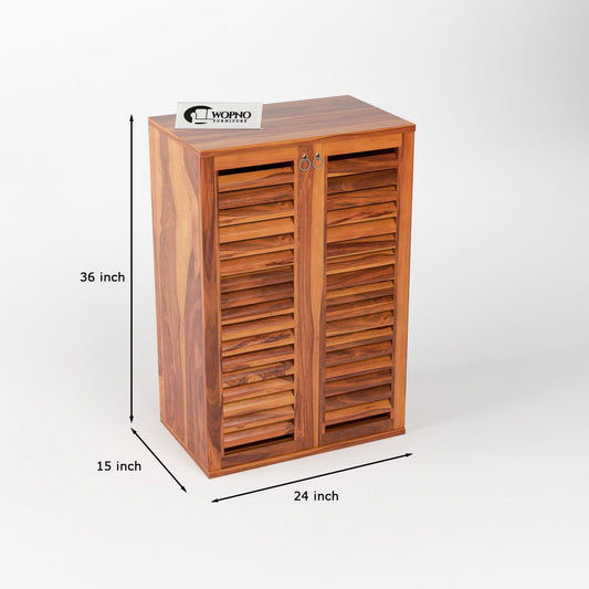Wopno Furniture Aurvin Solid Sheesham Wood Shoe Rack (Walnut Finish) Organize your footwear with elegance and durability using the Wopno Furniture Aurvin Solid Sheesham Wood Shoe Rack. Crafted from premium Sheesham wood, this shoe rack is designed to provide long-lasting strength while showcasing the rich natural patterns of solid wood....