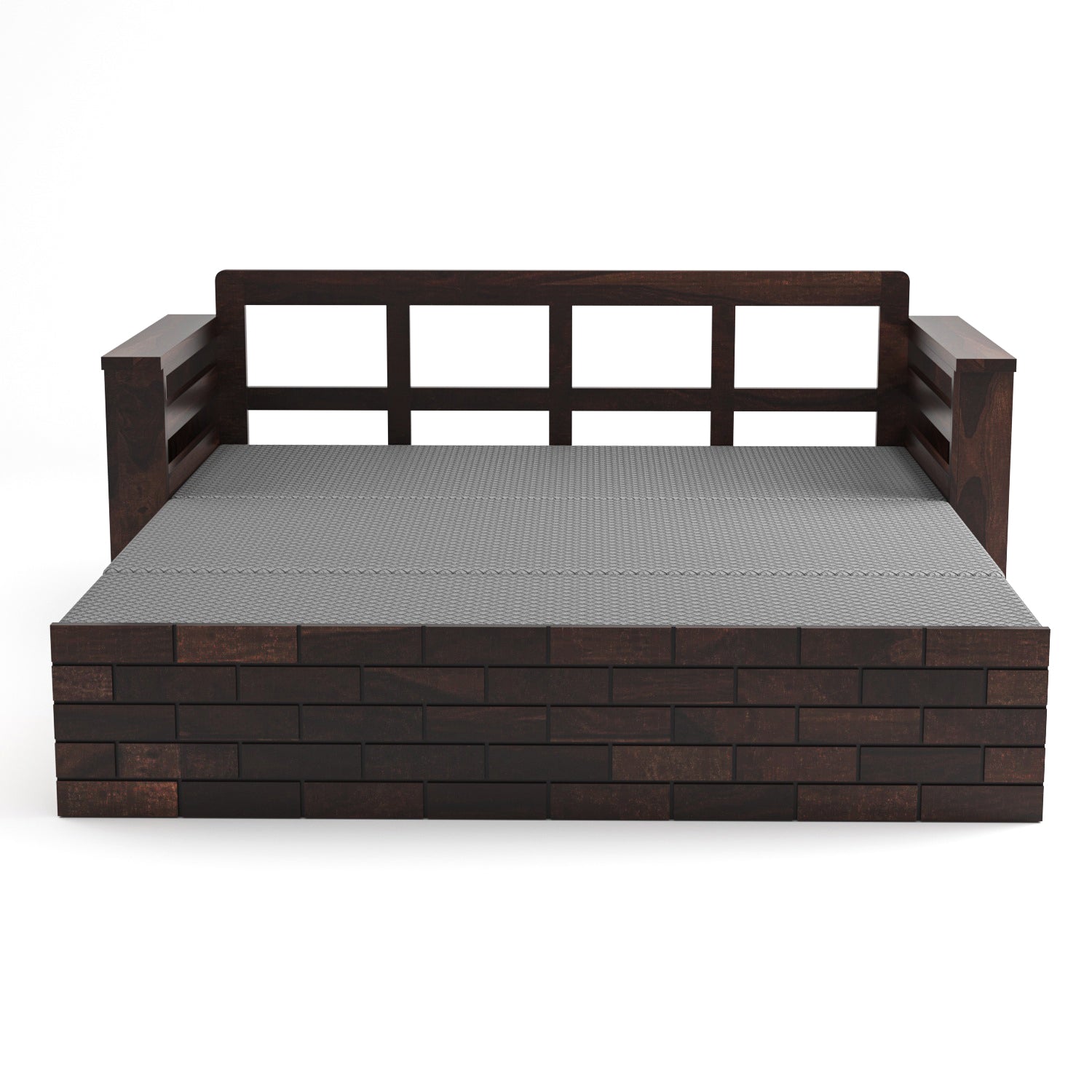 Wopno Furniture Bralor Solid Sheesham Wooden 3 Seater Sofa Cum Bed (Walnut Finish)