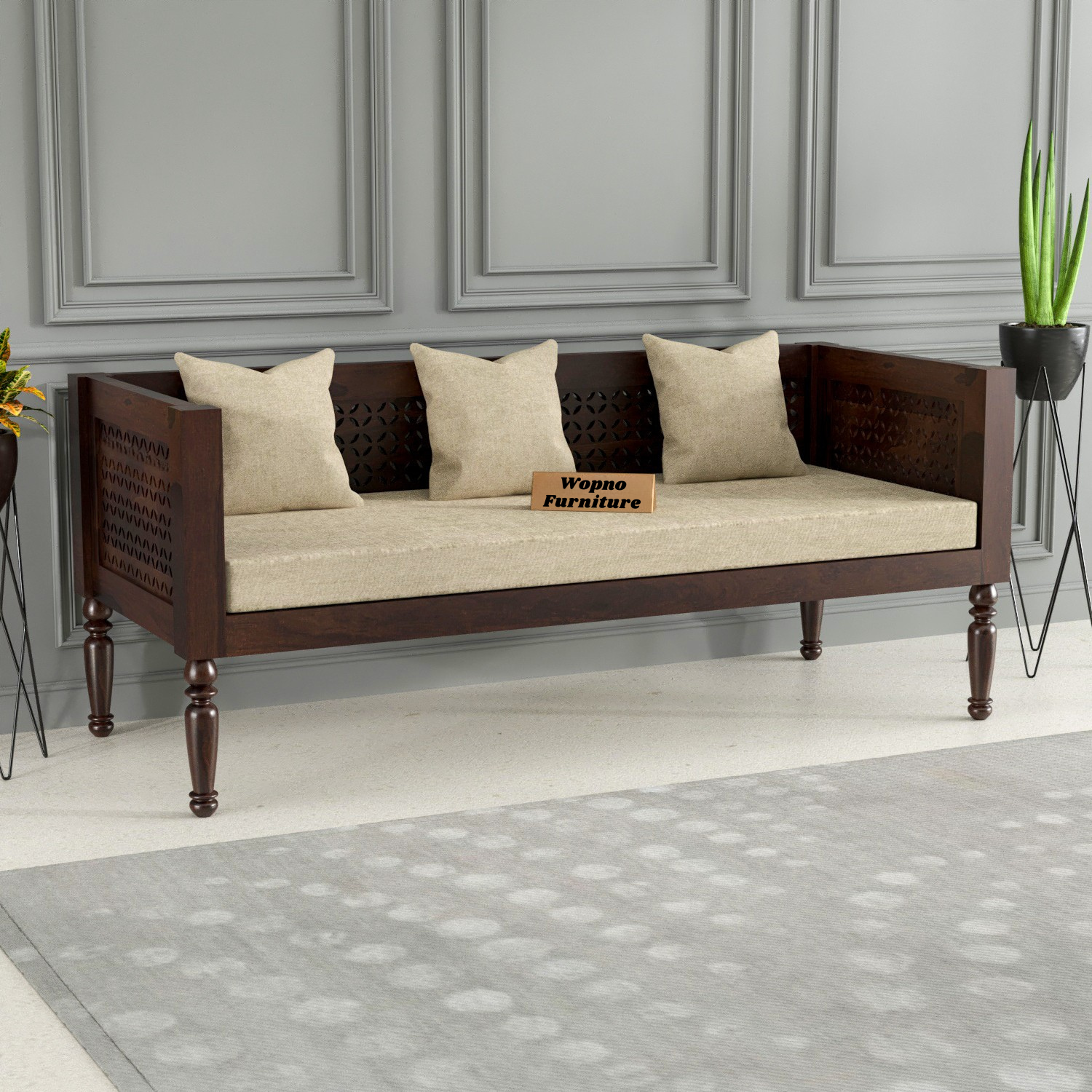 Wopno Furniture Exrel Solid Sheesham Wooden 3 Seater Sofa (Walnut Finish)