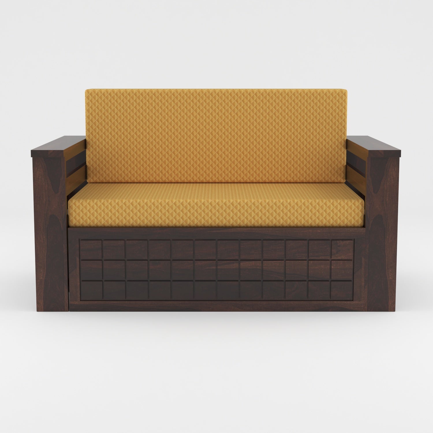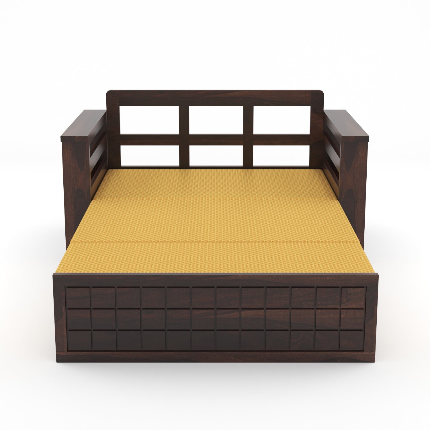 Wopno Furniture Fivrel Solid Sheesham Wooden 2-Seater Sofa Cum Bed (Walnut Finish)