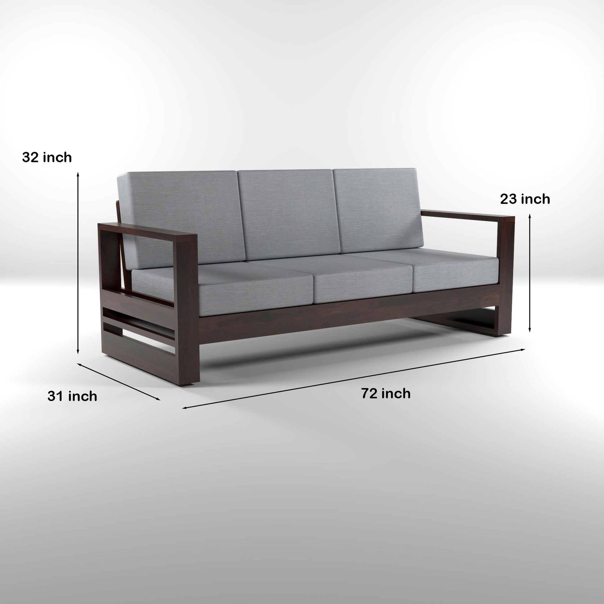 Wopno Furniture Nivora Sheesham Wooden 3 Seater Sofa Set (Walnut Finish)