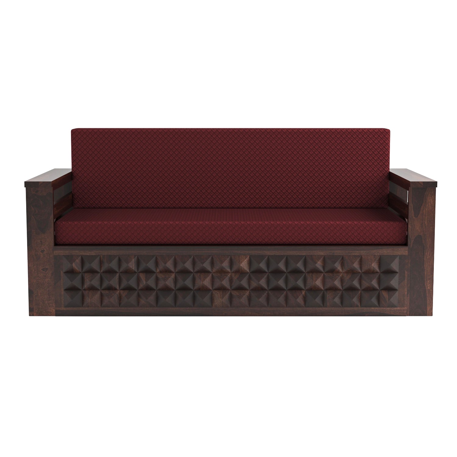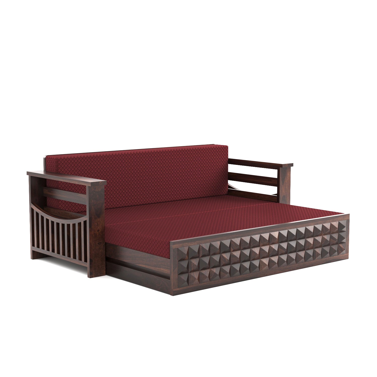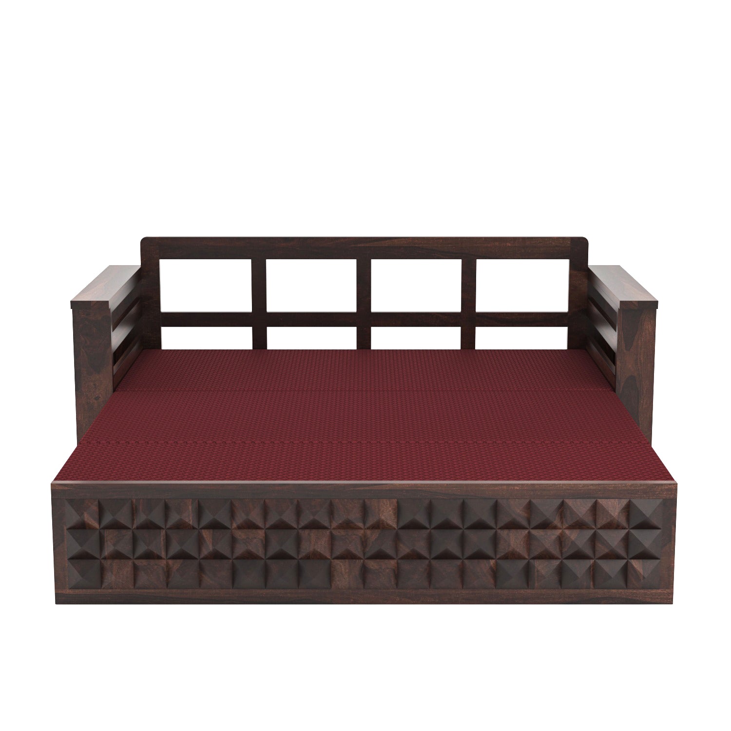 Wopno Furniture Orvan Solid Sheesham Wooden 3 Seater Diamond Sofa Cum Bed (Walnut Finish)