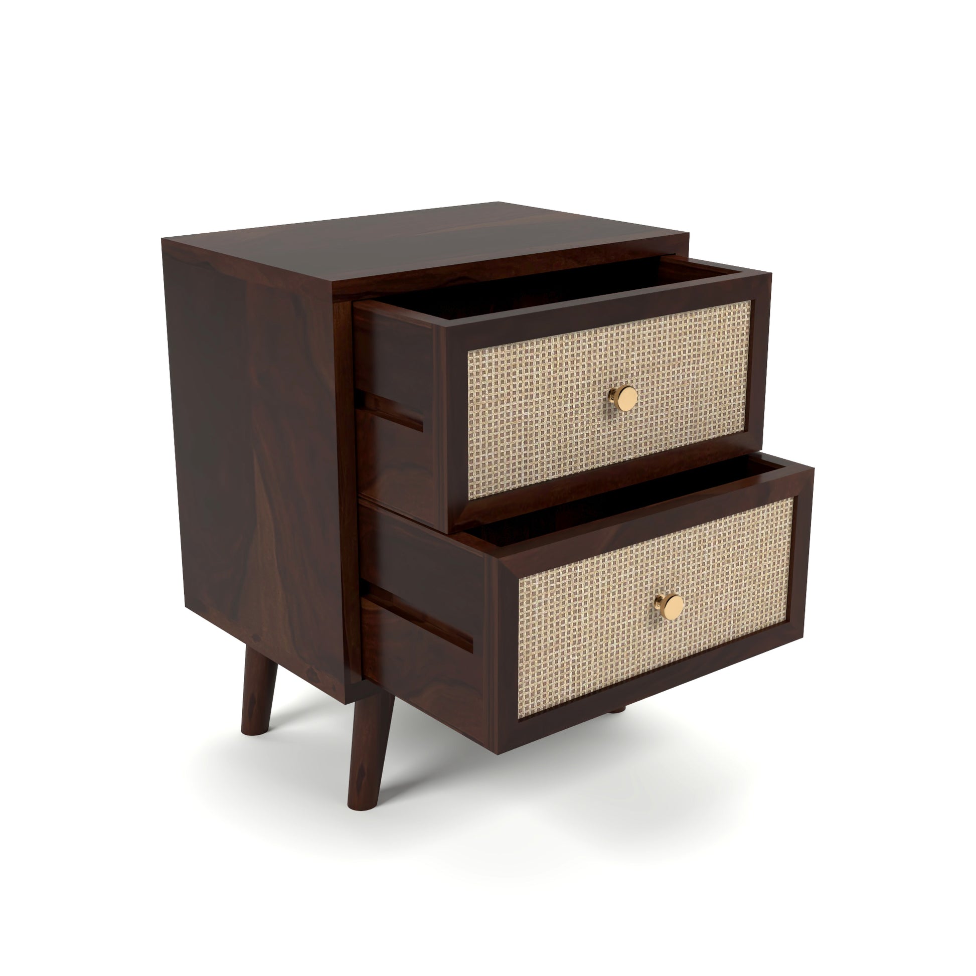 Wopno Furniture Rattan Cane Solid Sheesham Wood Bedside Table