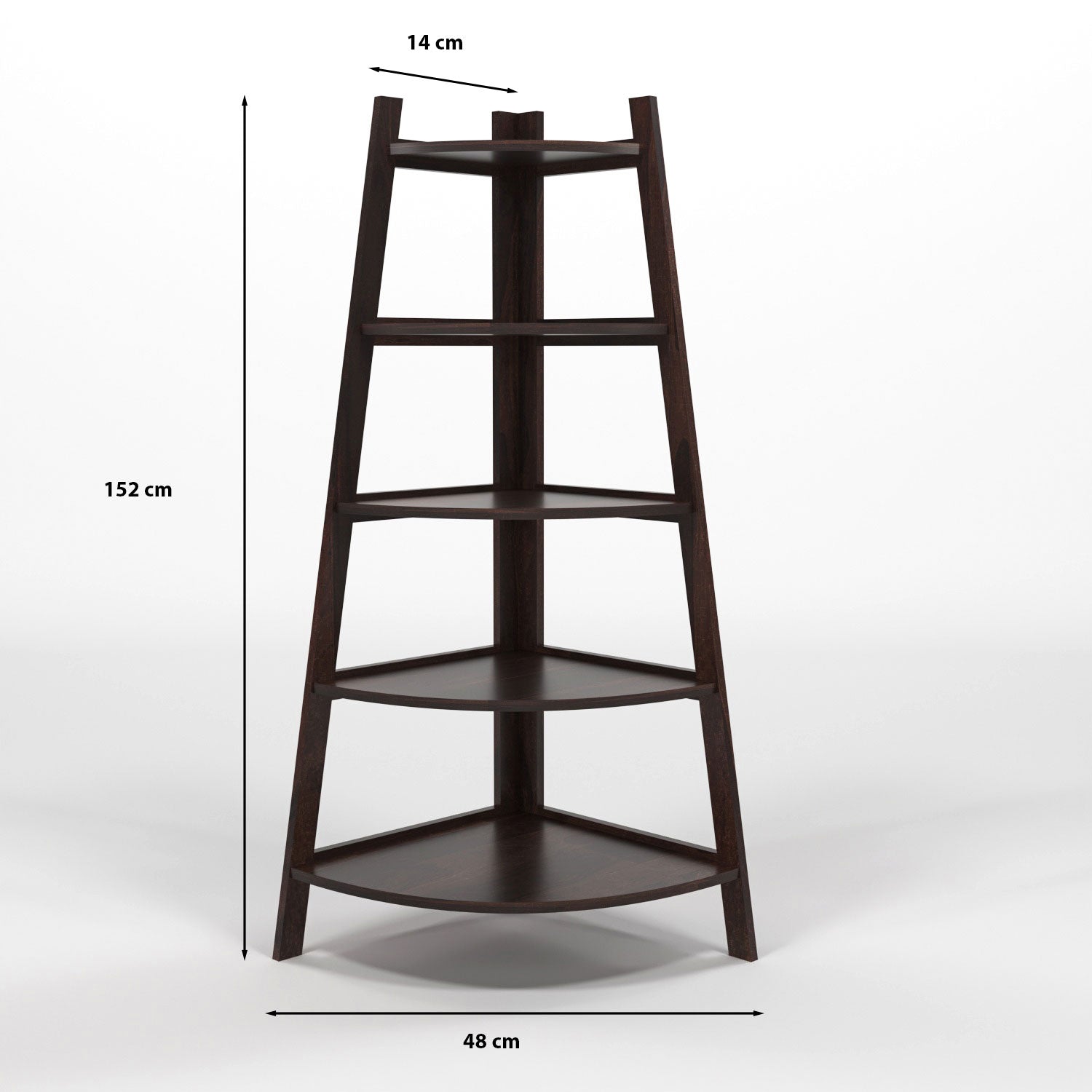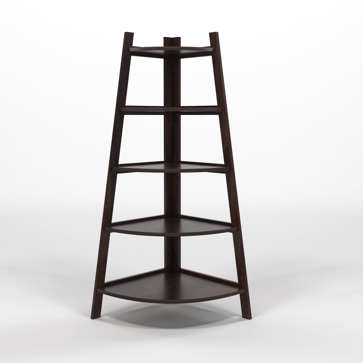 Wopno Furniture Zentor Solid Sheesham Wood 5 Tier Corner Ladder Shelf Floor Standing (Walnut Finish)